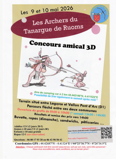 Le 9 et 10 Mai 2026, les Archers du Tanargue à Ruoms organisent leur concours amical 3D.